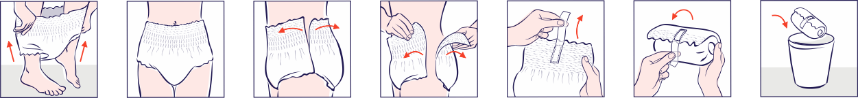 • cusături laterale ce se rup şi bandă de fixare  – îndepărtare uşoară a produsului uzat